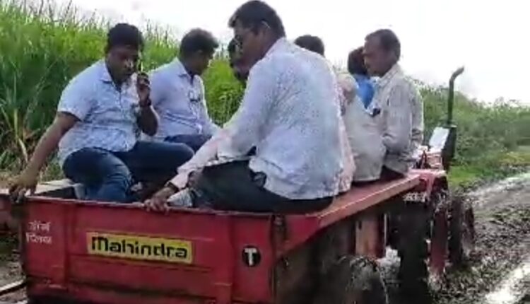 ब्रह्मपुरी येथे चिखलामुळे ट्रॅक्टर मधून जाऊन केली स्थळ पाहणी तर बावची येथे शेतकऱ्याच्या घरी जाऊन दिला मदतीचा हात