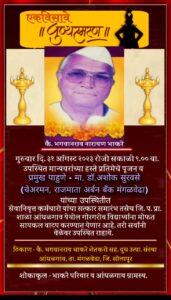 मंगळवेढा पंचायत समितीचे माजी सभापती कै भगवानराव भाकरे यांच्या 21व्या पुण्यतिथीनिमित्त आंधळगाव येथे दिनांक 31ऑगस्ट रोजी कै. भगवानराव भाकरे यांच्या प्रतिमेचे पूजन व विविध कार्यक्रमाचे आयोजन केले आहे.