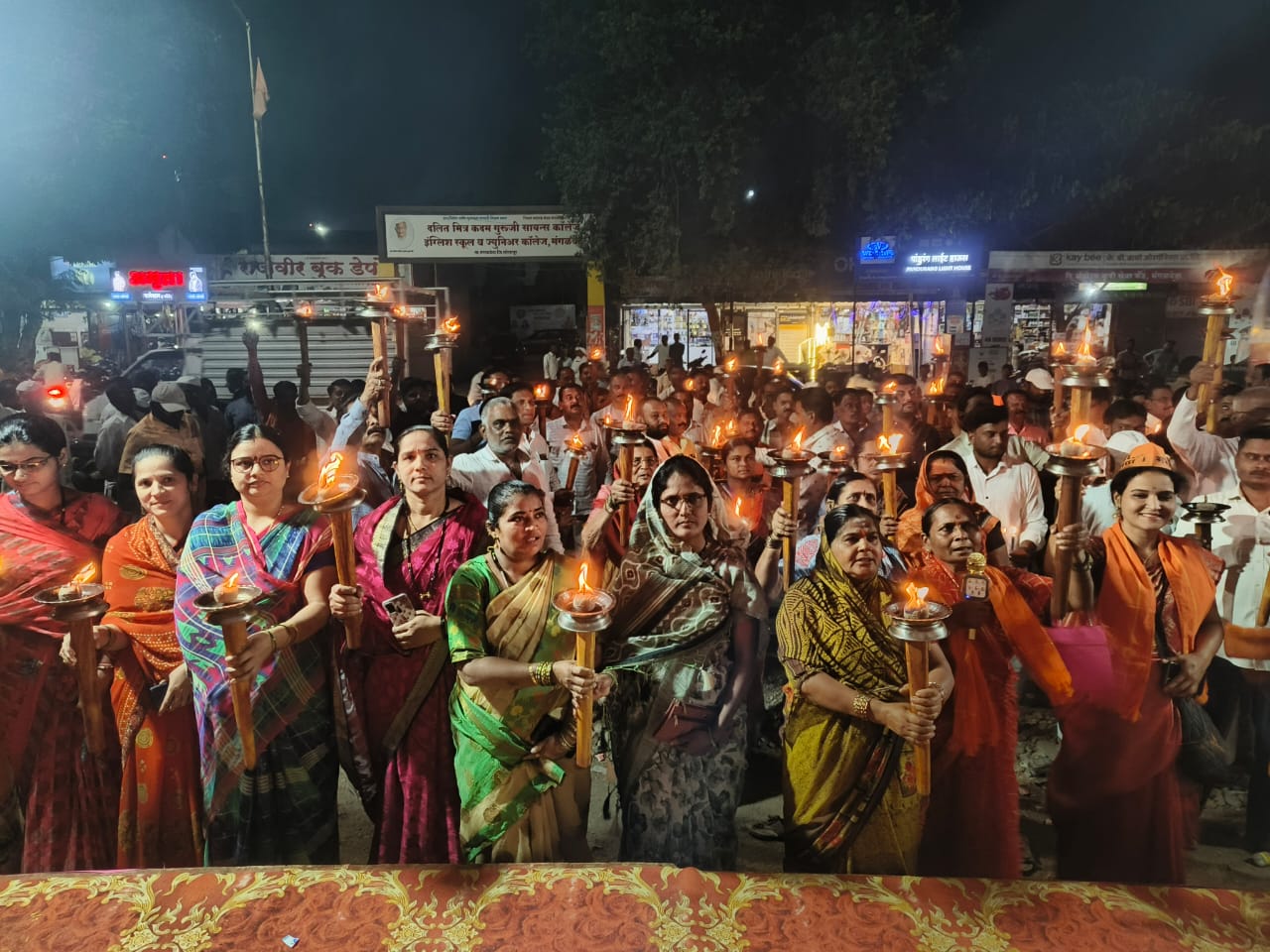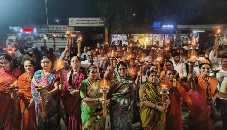 सकल मराठा समाजास सरसकट कुणबी प्रमाणपत्र देऊन मराठा समाजाला आरक्षण द्यावे यासाठी गेल्या चार दिवसापासून साखळी उपोषण सुरू असून आज दिनांक 28रोजी मंगळवेढा शहरात मशाल मोर्चा काढण्यात आला.