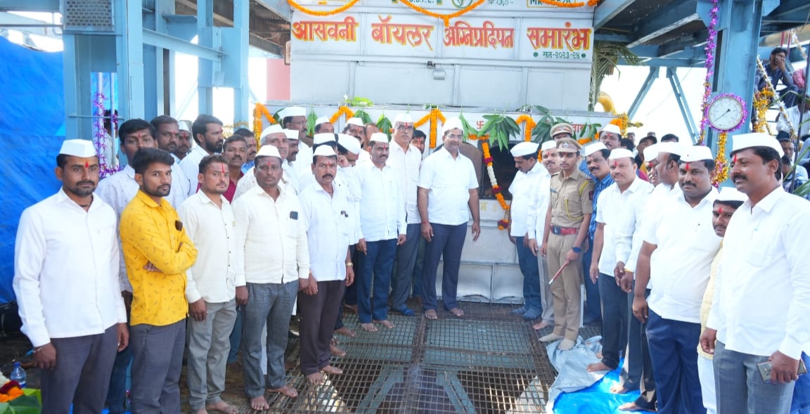 शुक्रवार दिनांक 3 रोजी कारखान्याचे चेअरमन संजय आवताडे यांच्या उपस्थितीत व कारखान्याचे टेक्निकल विभागाचे व्यवस्थापक सुहास शिनगारे व त्यांच्या पत्नी गौरी शिनगारे यांचे हस्ते होमहवन व सत्यनारायण महापूजा करून डिस्टिलरी विभागाचा द्वितीय बॉयलर अग्नी प्रदीपन करण्यात आला.